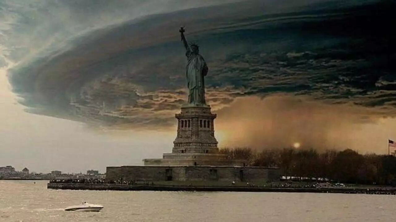 2012年飓风 “桑迪”袭击纽约之时,传出该假照。