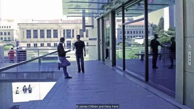 两个人站在室外交换东西?其实未必如此。图源:James O’Brien和Hany Farid