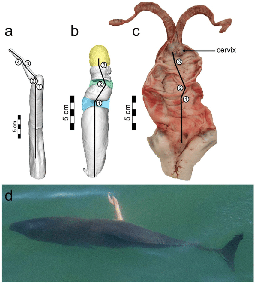 数十年来,生物学家们记录了一项在海洋哺乳动物(海豚、鲸鱼和江豚等)的生殖道中发现的奇怪特征:一系列肉质的褶皱,像是一层层叠起来的漏斗,一直延伸到宫颈。在文献中,它们通常被描述为“阴道褶皱(vaginal folds)”,并被认为其演化的目的是为了将能消灭精子的海水隔绝在子宫外。但对正在学习海豚生殖解剖的加拿大博士生达拉·奥尔巴赫(Dara Orbach)而言,这样的功能似乎无法解释她所发现的差异。2015年,一次偶然的机会使她与布伦南邂逅,她随后带着她收集的冰冻阴道样本,来到了布伦南的实验室一同调查。