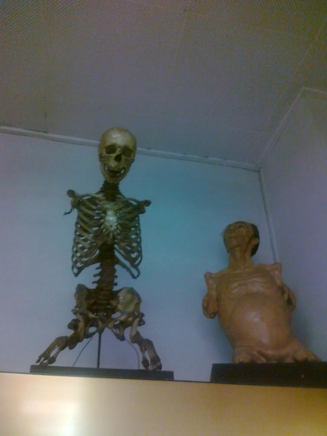 作为一座解剖病理学博物馆,馆内藏品陈列了一系列的疾病、病症,以及身体和智力上的残疾。这里存放着马可·卡佐特(Marco Cazotte,1741-1803)的骨架,他外号“皮平”(Pipine),是一位患有海豹肢症的男性,海豹肢症是一种罕见的先天缺陷,卡佐特生来没有臂和腿,他的手和脚直接连接在躯干上。卡佐特一辈子都在露天游乐场扮演“观赏项目”赚取收入,这是当时患有这种残疾的人为数不多的谋生方式之一。