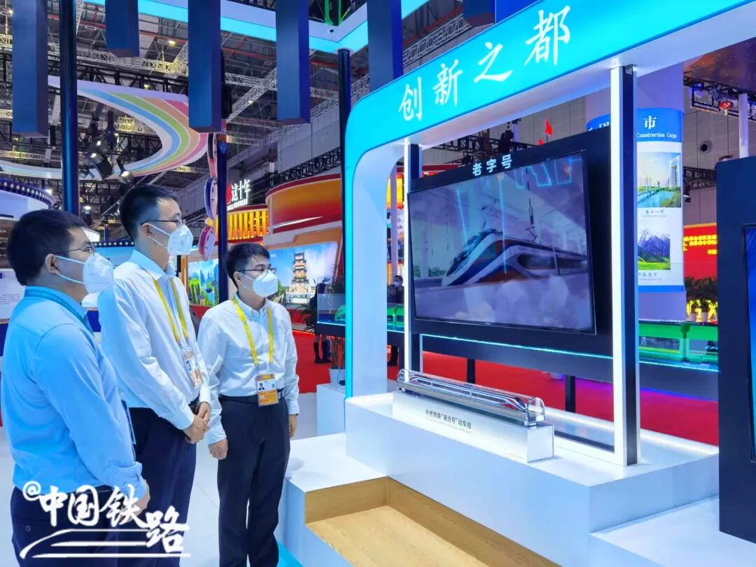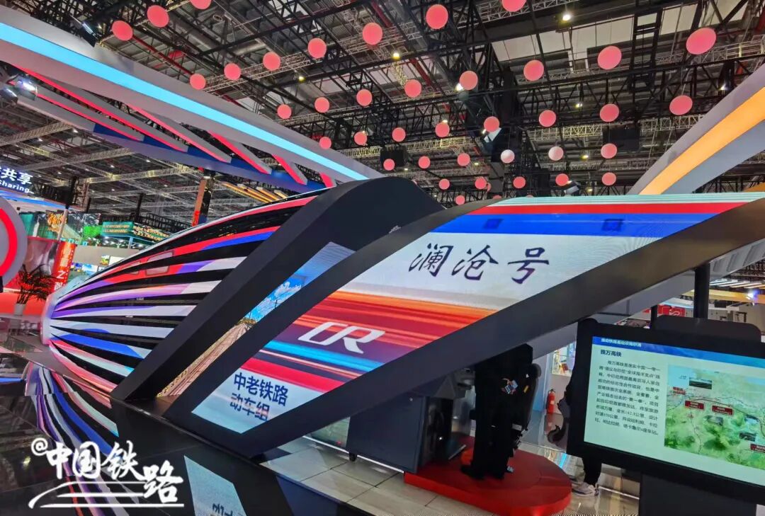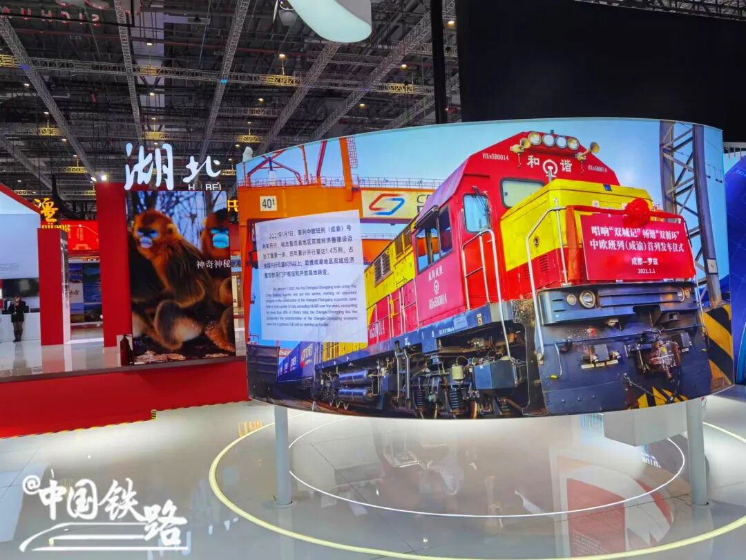在近3万平方米的综合展示区,随处可见铁路元素,中欧班列、中老铁路跨境货物列车在成就专区、各省市专区频繁亮相。