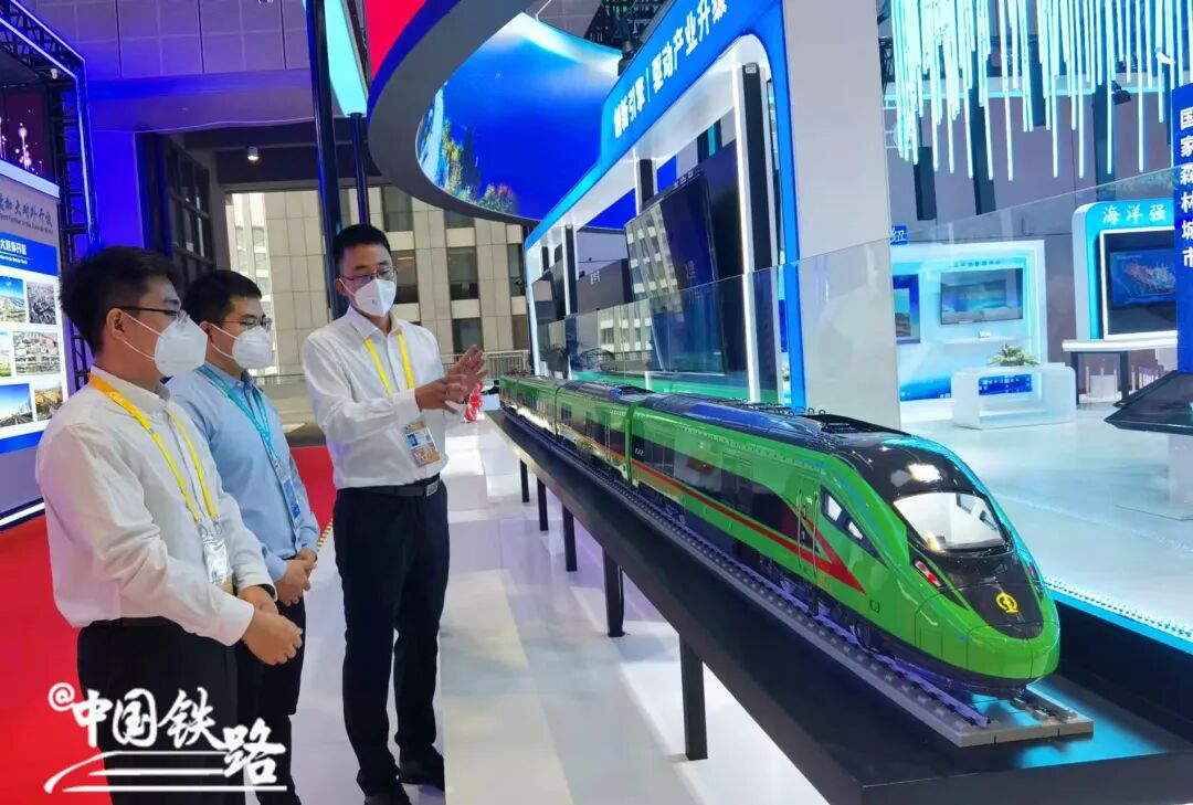 在“十年成就”吉林省展区,中车长客制作的京张高铁复兴号冬奥智能动车组模型让观众眼前一亮;在新疆、四川、甘肃、广东、云南等展区,图片、文字、视频、实物等多种形式呈现铁路服务地方经济发展,展示铁路助力打造国际性综合交通枢纽、深度融入“一带一路”建设的成就;在大连市主题成就展区,复兴号“绿巨人”、中老铁路“澜沧号”等动车组模型,以及工作人员介绍的中车铁路产品,吸引观众纷纷驻足。