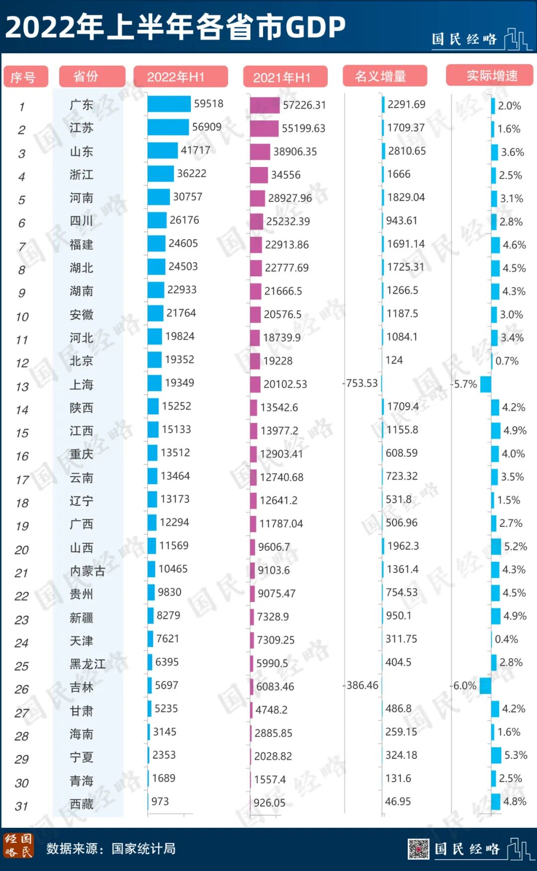 2022年上半年,山东GDP总量达4.17万亿,名义增量2810.65亿元,超过广东的2291亿元、江苏的1709.37亿元,位居全国之首。