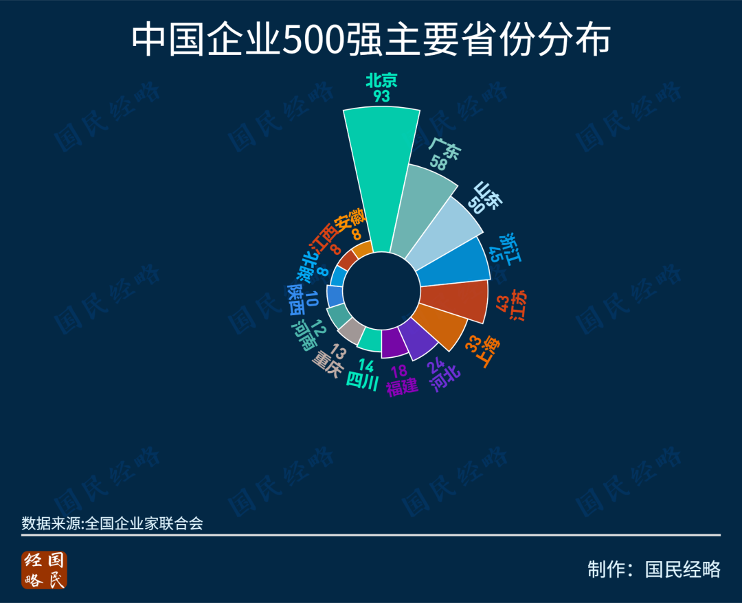 在2021年中国企业500强中,山东共有50家企业上榜,仅次于北京、广东,位居全国第三。