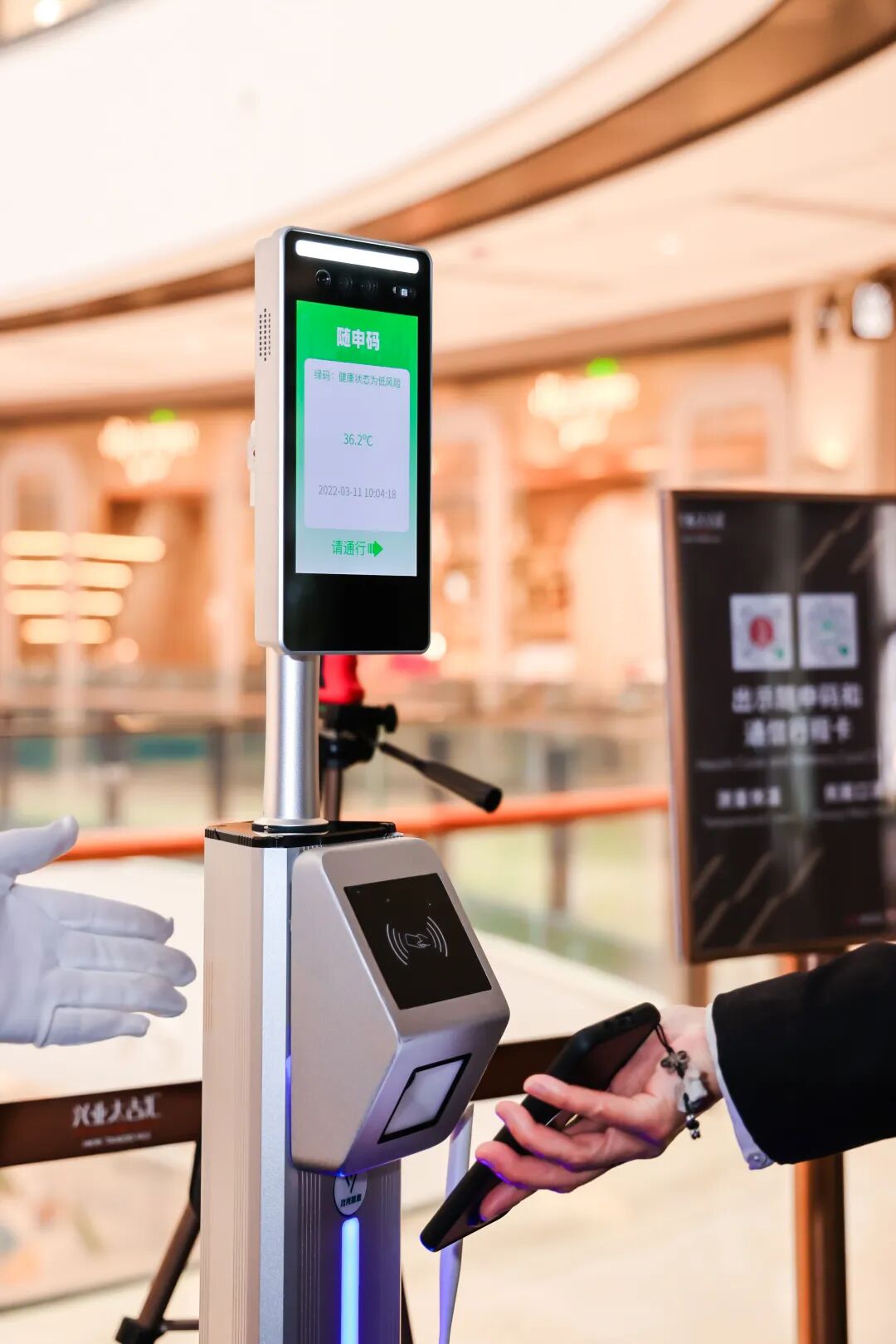 今年1月份,区商务委就开始协调引导区内重点商场、大型商超等场所配备具有验码测温功能的一体机(又称“数字哨兵”),并实现了重点商超80%以上的覆盖率,率先通过“数字赋能”提高商超防疫效率。