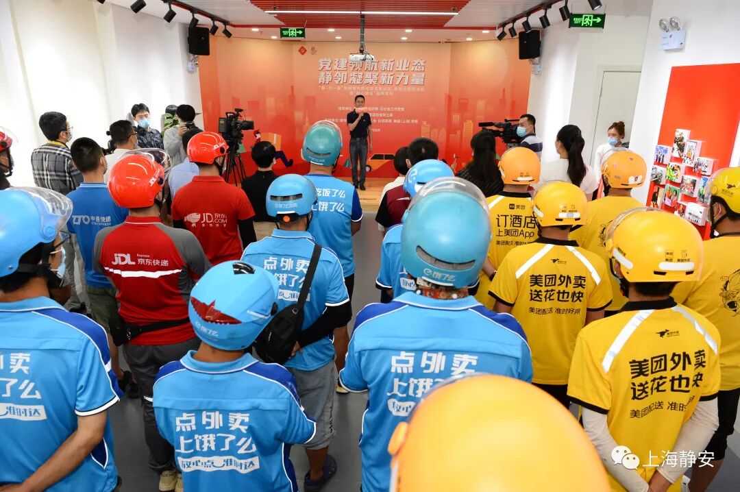 当天,来自美团、饿了么、叮咚、顺丰等7家平台企业的快递员和外卖员代表齐聚曹家渡街道社区党群服务中心,区委组织部、区文明办、区总工会、曹家渡街道、白领驿家等多家单位协同参与,美团(上海)党委大力支持,共同见证静安新业态、新就业群体党建工作的新探索。