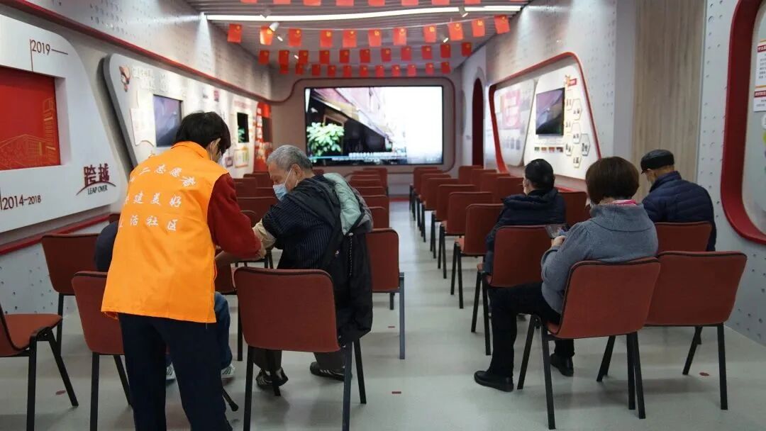 12月8日早上9时,在居委会工作人员、社区志愿者的陪同下,来自石门二路街道恒丰居民区的十名老年人,准时到达家门口的党群服务中心接种新冠疫苗。