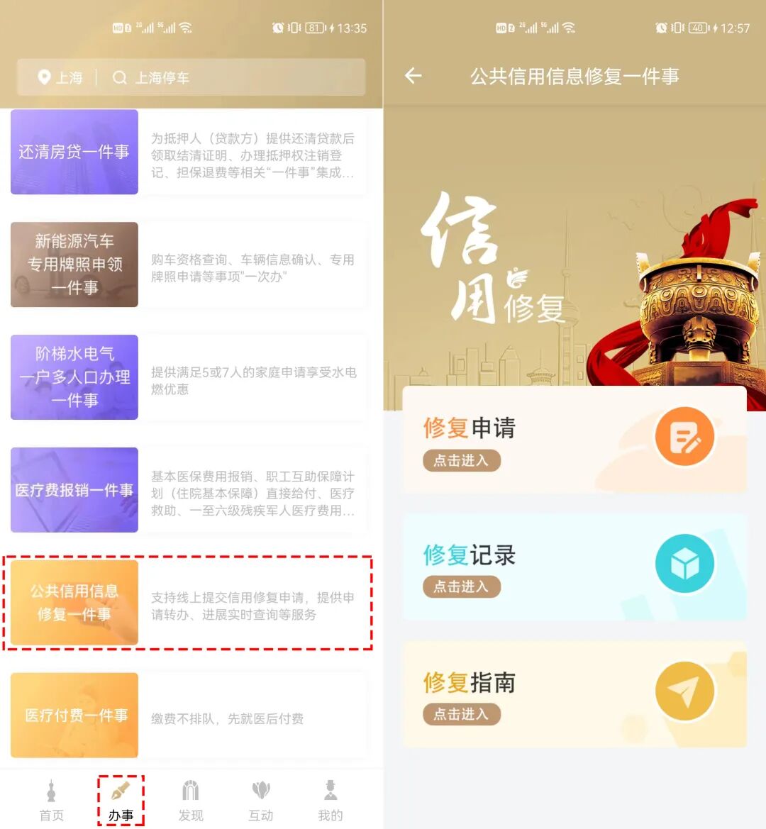 【办事→公共信用信息修复一件事】