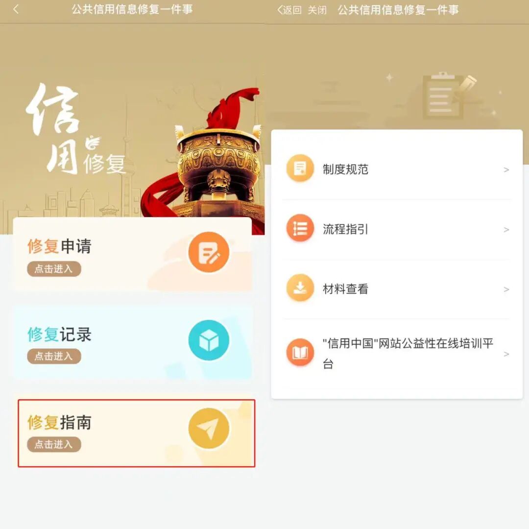 提供【公共信用信息修复一件事】