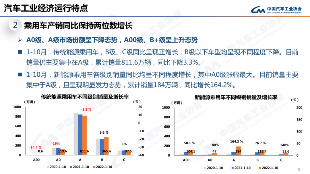 10月,汽车产销分别完成259.9万辆和250.5万辆,环比分别下降2.7%和4%,同比分别增长11.1%和6.9%。1-10月,汽车产销分别完成2224.2万辆和2197.5万辆,同比分别增长7.9%和4.6%。