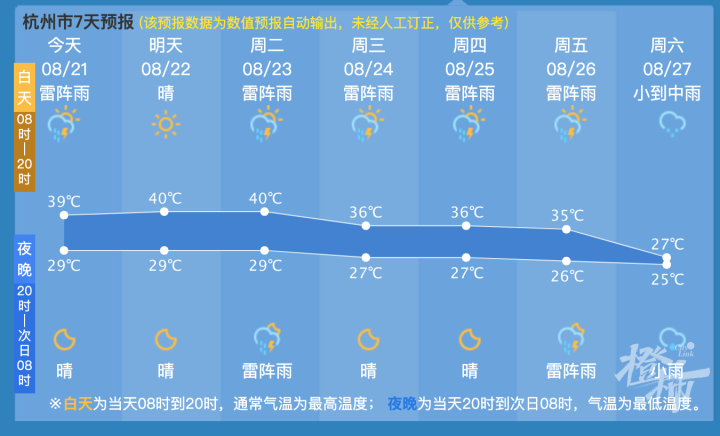 杭州气象台今天发布的最新天气预报显示,下周六杭州的最高气温将跌至“27℃”!