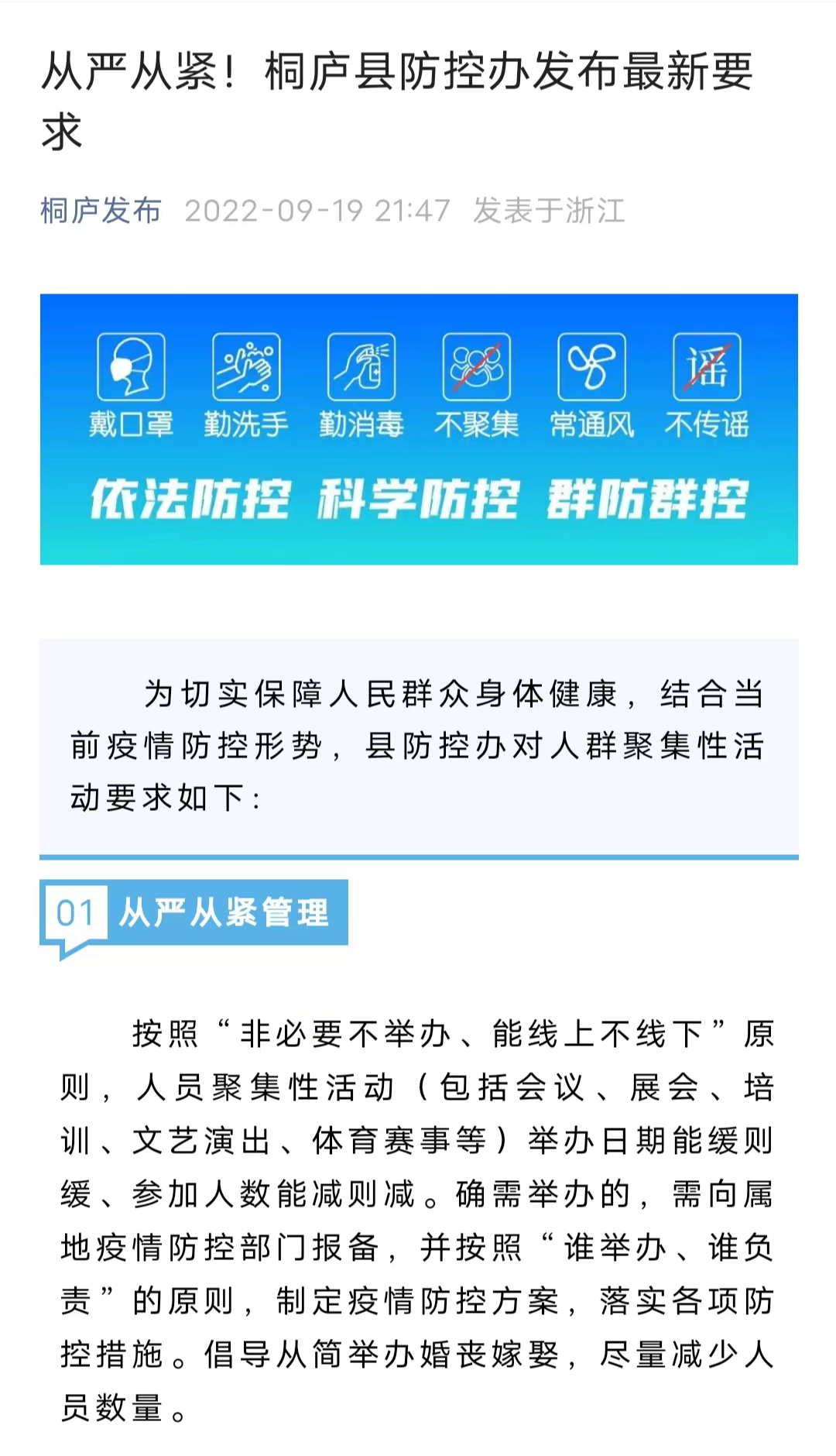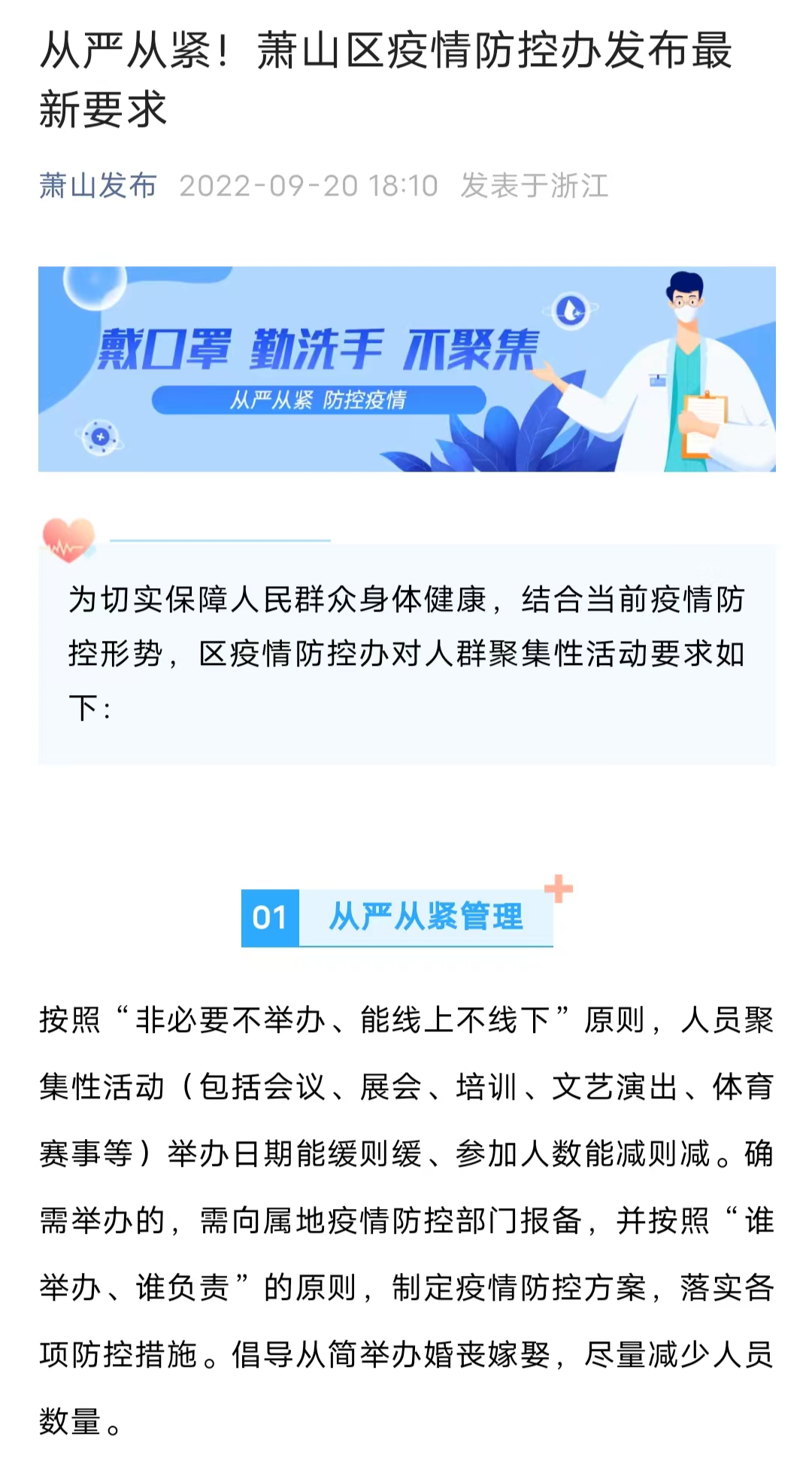 为切实保障人民群众身体健康,结合当前疫情防控形势,区疫情防控办对人群聚集性活动要求如下: