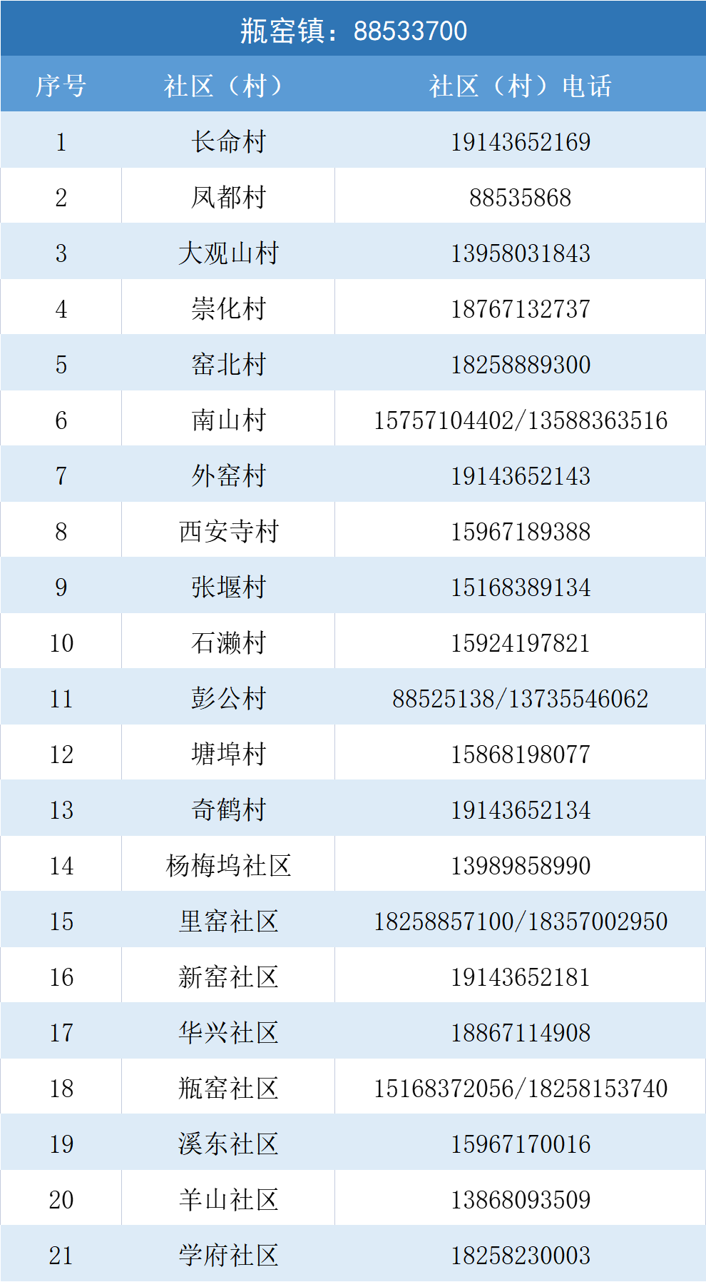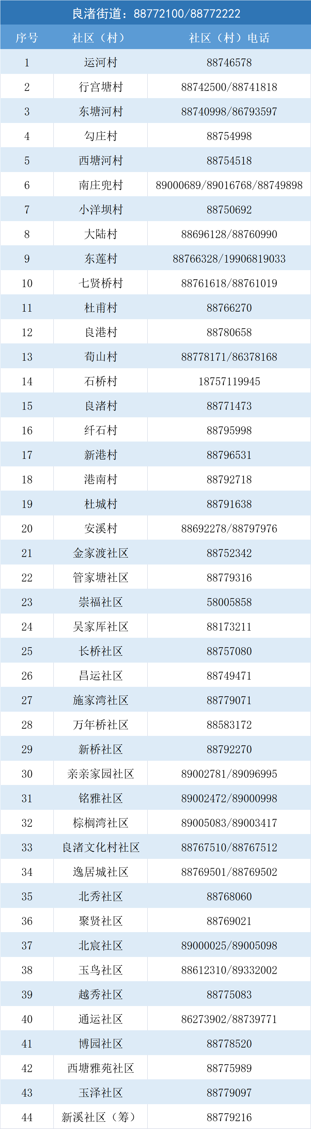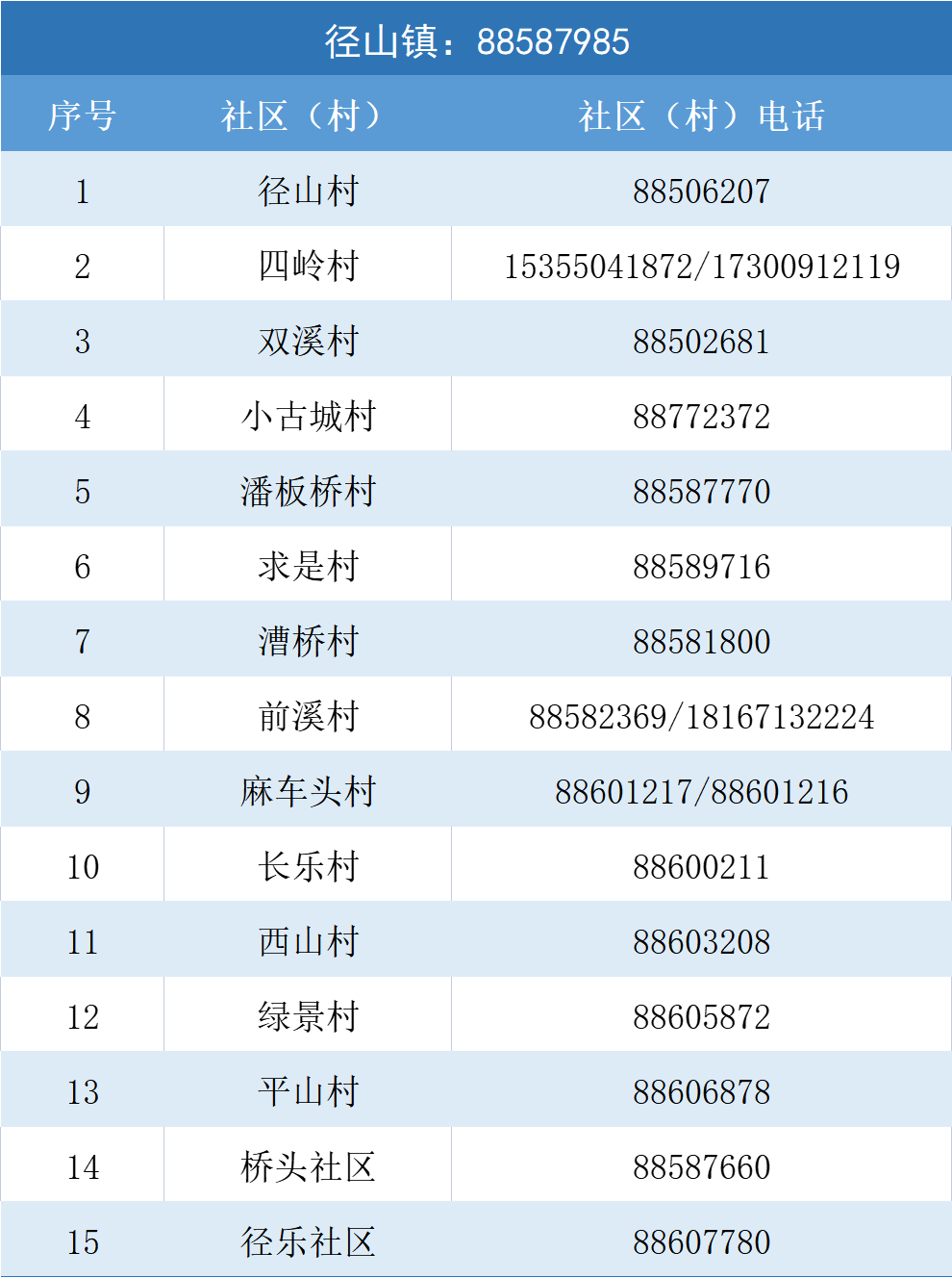为方便大家与所在村(社)联系