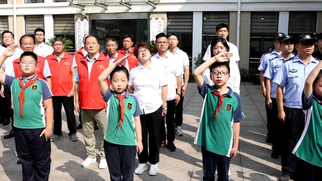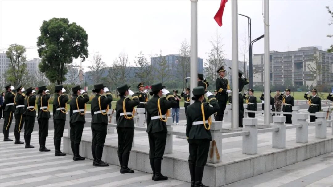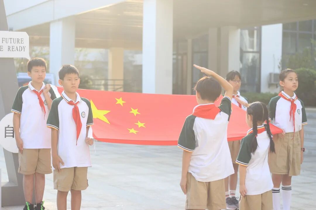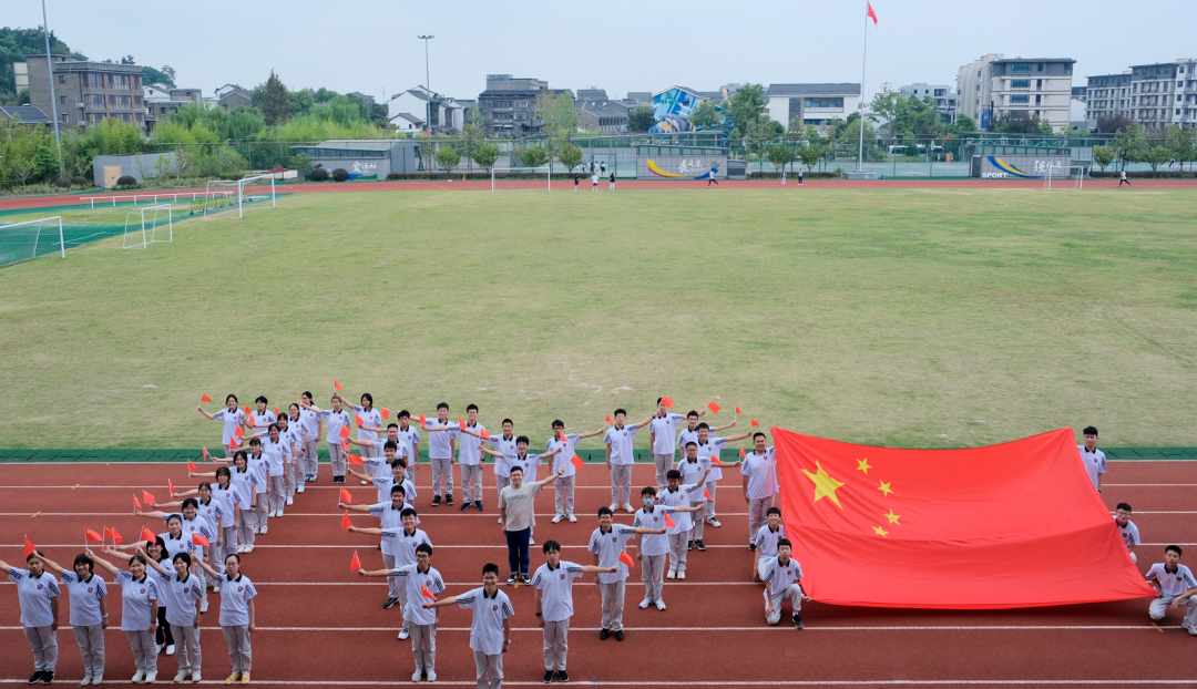 余杭学子们一起与国旗合影