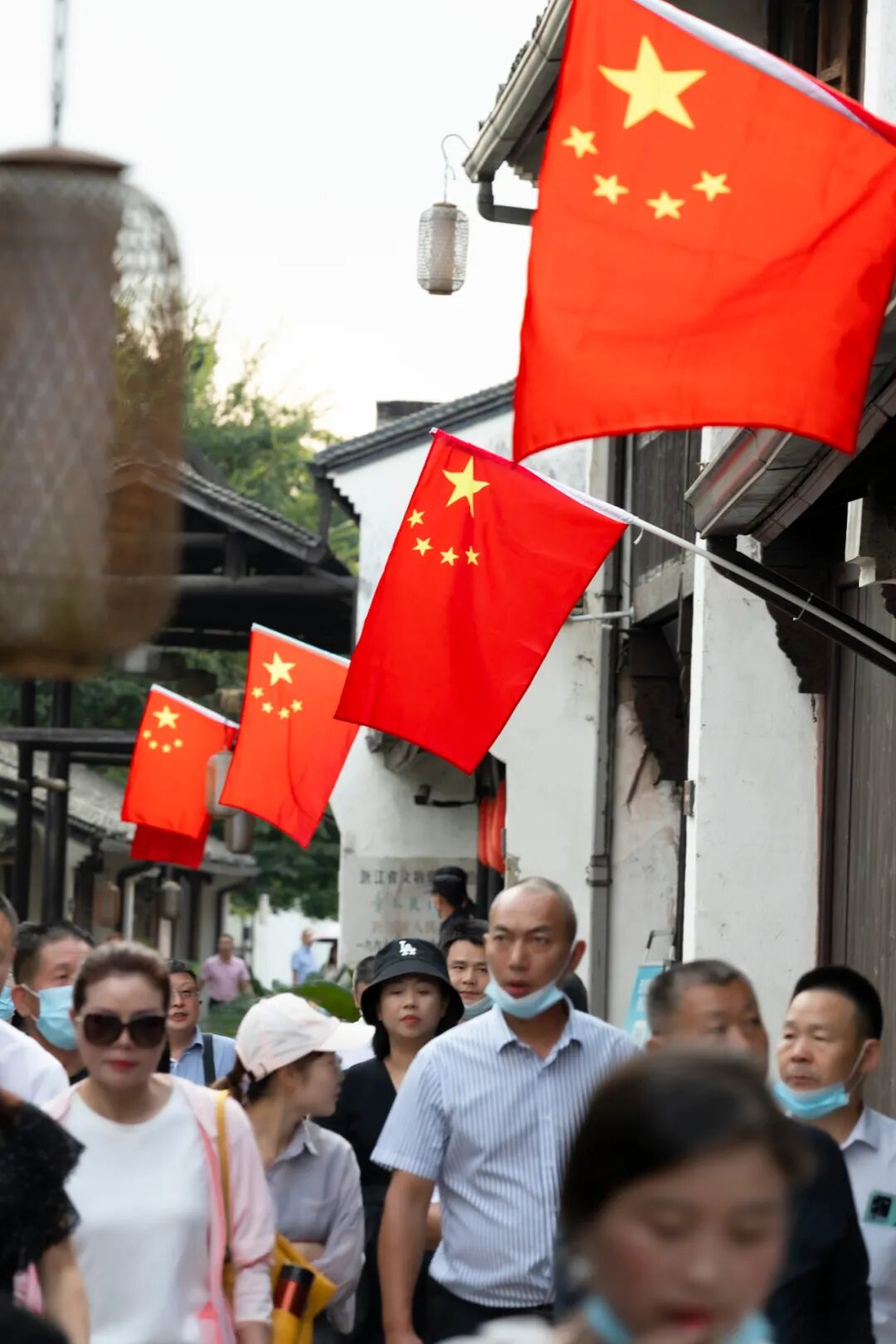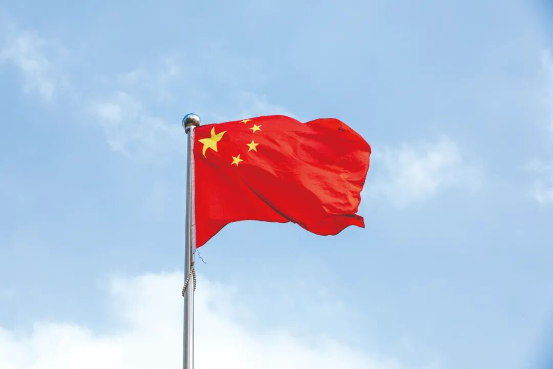 随处可见亮眼的五星红旗