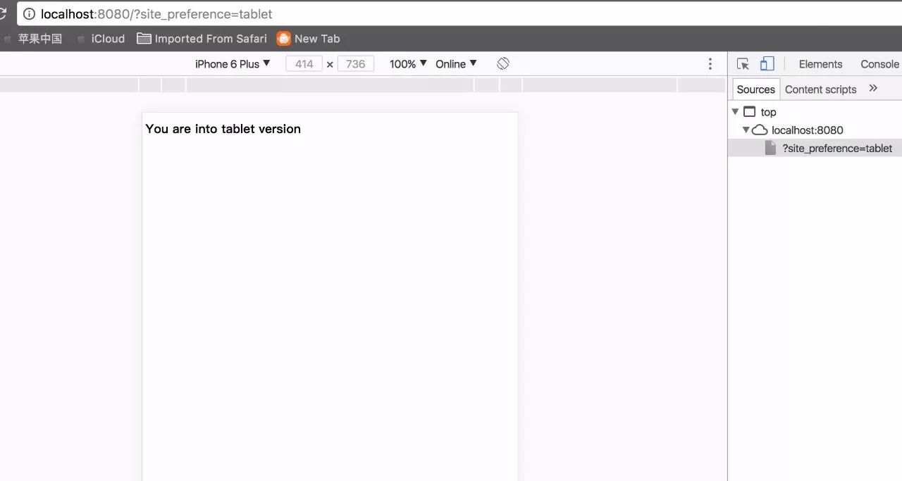 这里我们使用Chrome的开发者Console工具来模拟不同类型的设备。
