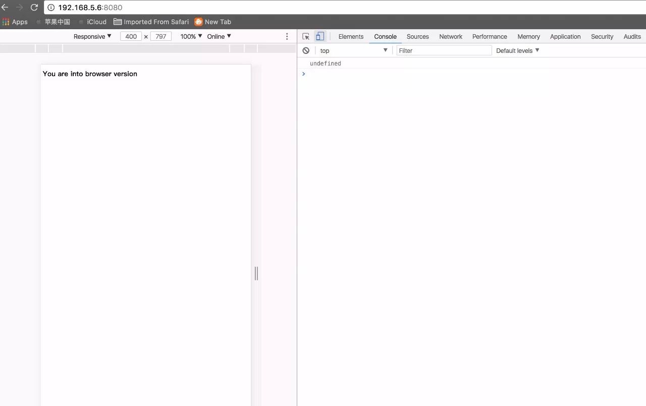 现在,我们打开chrome浏览器的console面板开始表演吧,点击一下顶部的第二个那个图标,现在浏览器已经变成了一个手机的样子。