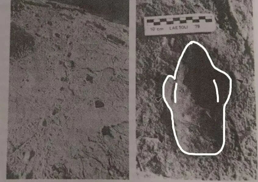 那要从坦桑尼亚的一出足迹化石说起:在坦桑尼亚利特里地区,人们曾经发现了大量的上新世的古哺乳动物脚印化石,其中之一就是是某种三趾马的行进足迹化石。这一串足迹显示一匹幼马正在一匹母马前方一起小跑前进。可能是幼马顽皮,它突然从母马身前横向穿过。这一行为可能让在较快速度中行动的母马出现了晃动,为了保持平衡,母马被迫停顿了一下,于是在本来都是单一脚趾脚印的行进路程中,这匹母马的右后足留下了一个清晰保留了左右侧趾的足迹!