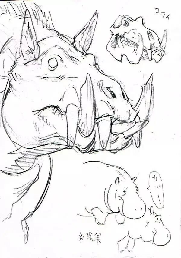 ↓而这个,则是河马的头骨、河马的“复原图”,和现实中的河马: