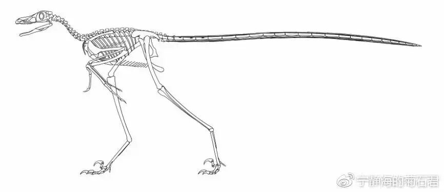 对,这就是一开始我仅有的东西。由于保存不全,所以我首先要通过观察,逐一确定并描绘出化石石板上保存的全部骨骼,同时对其中的一些骨骼进行形态修正,然后通过计算比例、参考亲缘关系接近的驰龙类等方法逐一补完骨骼。