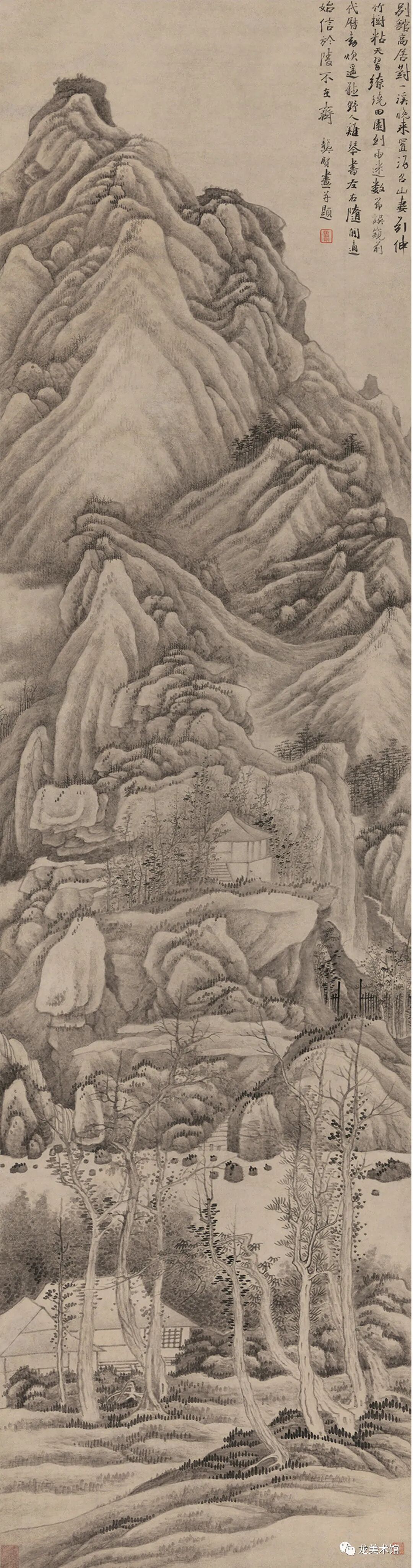 龚贤,《别馆高居图》,纸本水墨,212.5×55.5cm,清,龙美术馆