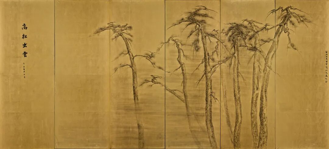萬亨,《高松出云》,纸本金地水墨,六扇屏风,172×380cm,2021