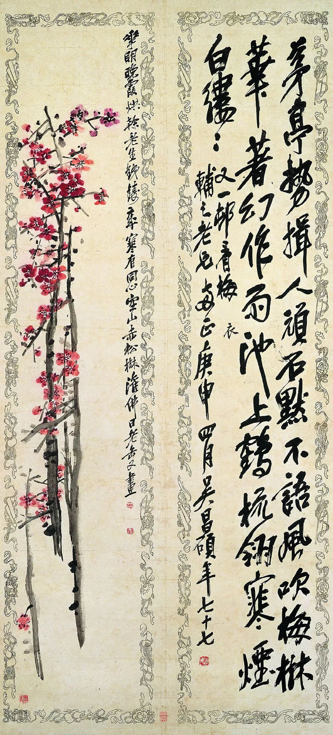 吴昌硕,《红梅行书轴》,纸本设色,167.6×76.2cm,1920,龙美术馆