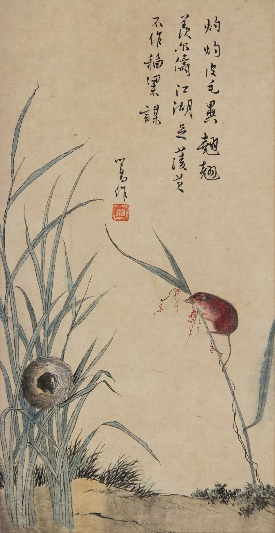溥儒,《不作稻粱谋》,纸本设色,58×30cm,龙美术馆