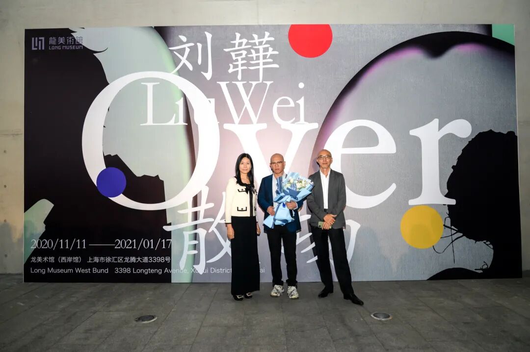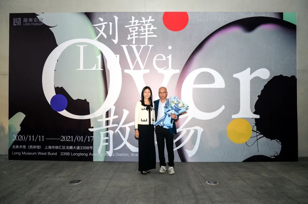 “刘韡:散场/OVER”开幕式现场,龙美术馆馆长王薇、艺术家刘韡合影,龙美术馆(西岸馆),2020,摄影:洪晓乐