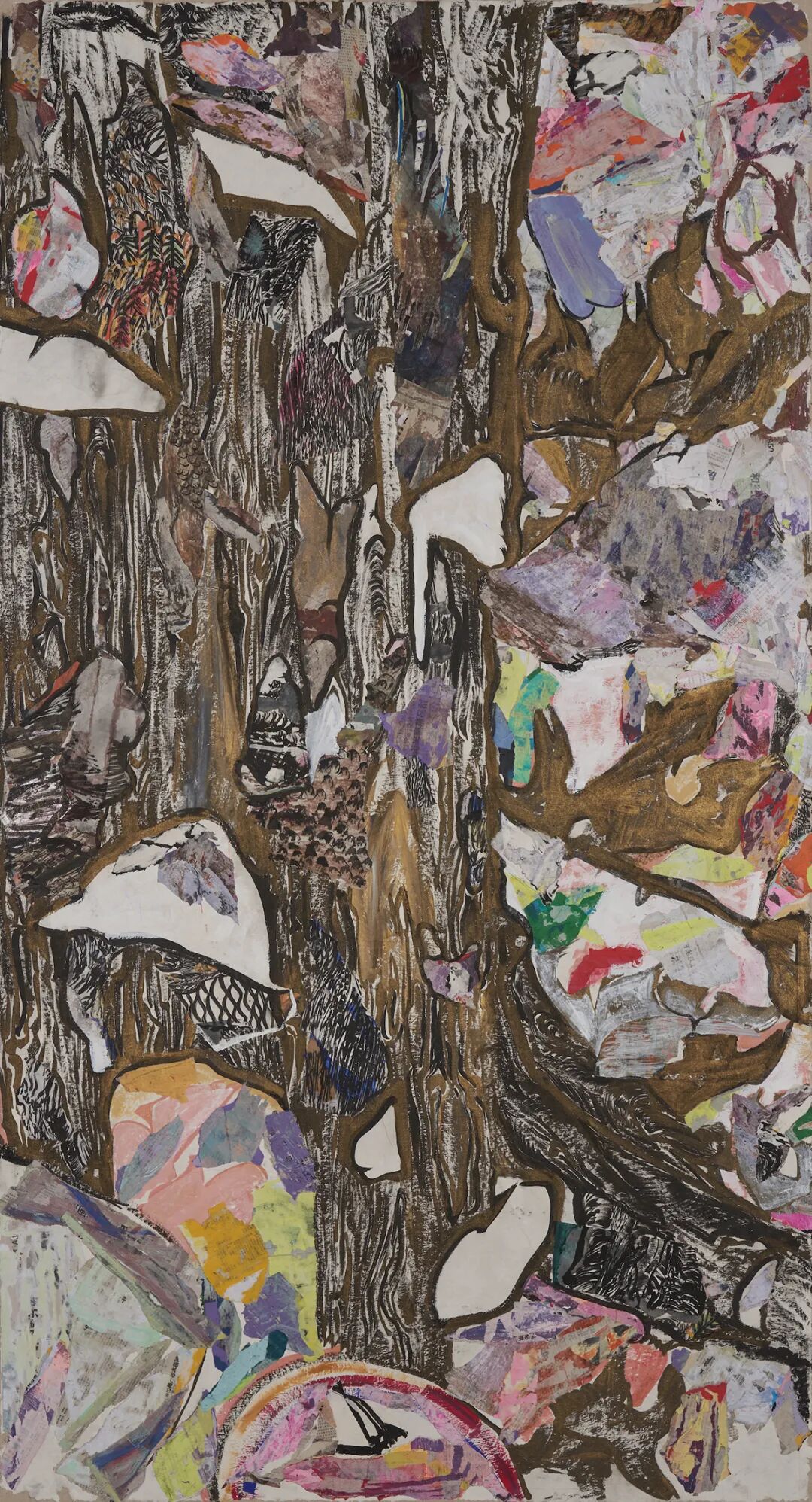 陈彧君,亚洲地图No.171013,纸本综合拼贴、裱于绢面,244.5x126.5cm,2017,图片由龙美术馆及陈彧君工作室提供