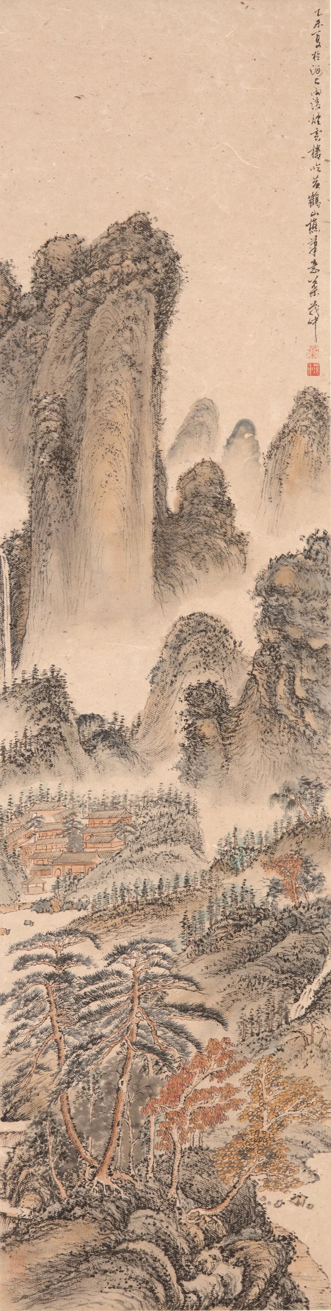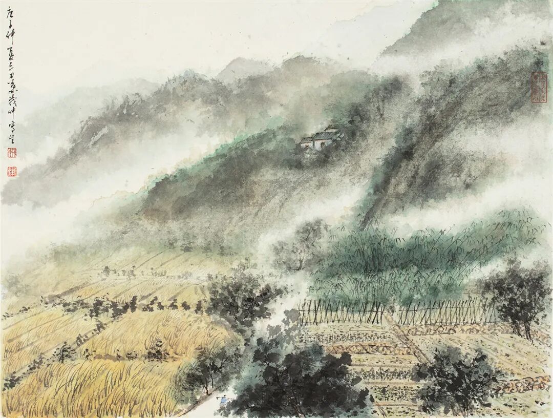 叶茂中,夏山图,纸本设色,方严题诗堂,诗堂:21x70cm,画心:51×70cm,2015