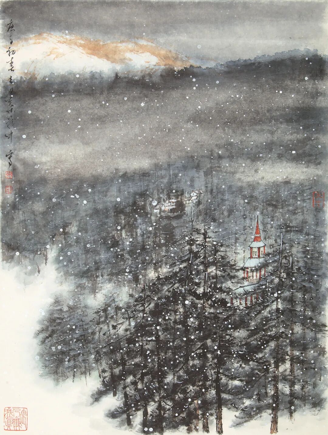 叶茂中,柴门掩雪图,纸本设色,88×63cm,2015