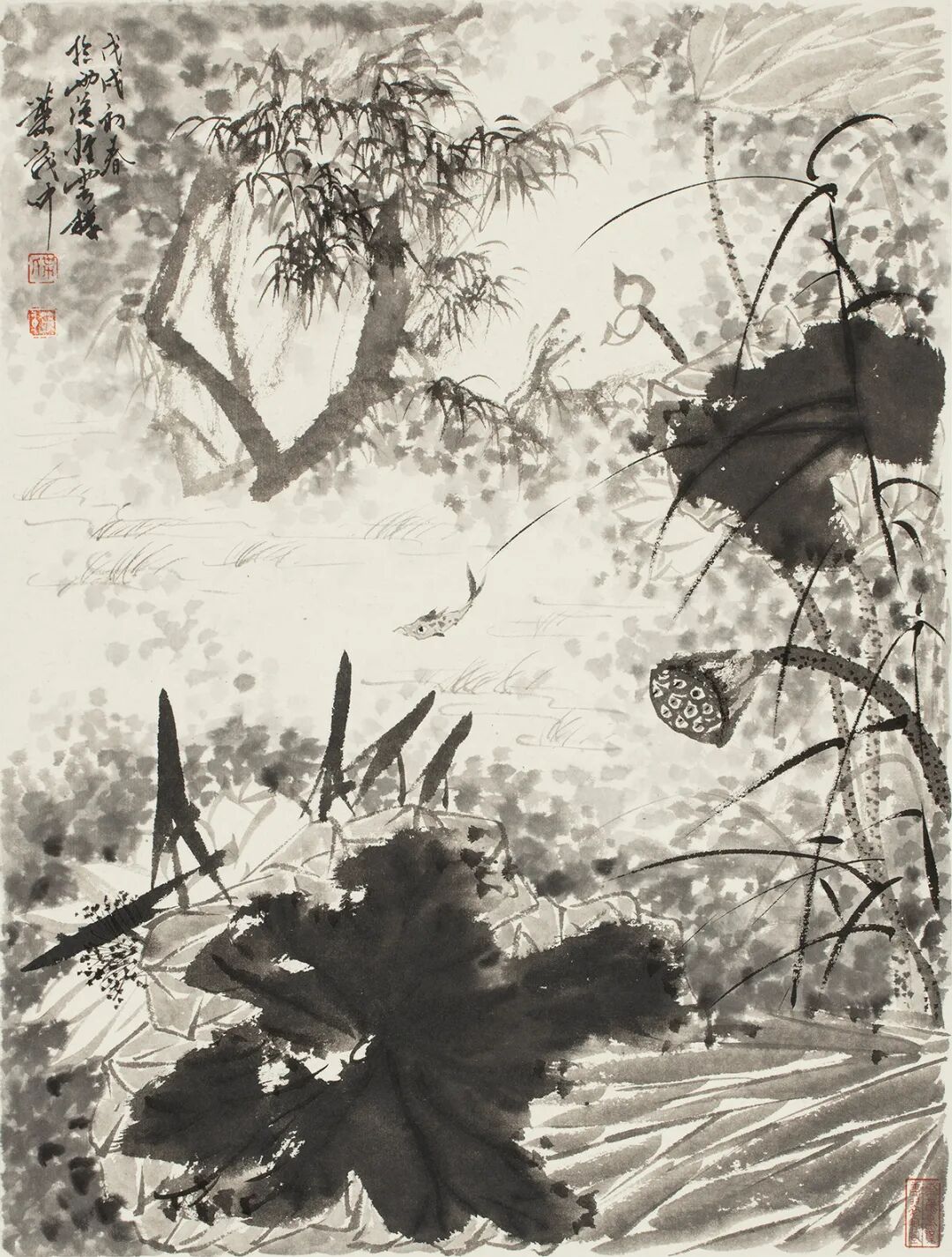 叶茂中,鱼戏莲叶间,纸本水墨,45×34cm,2018
