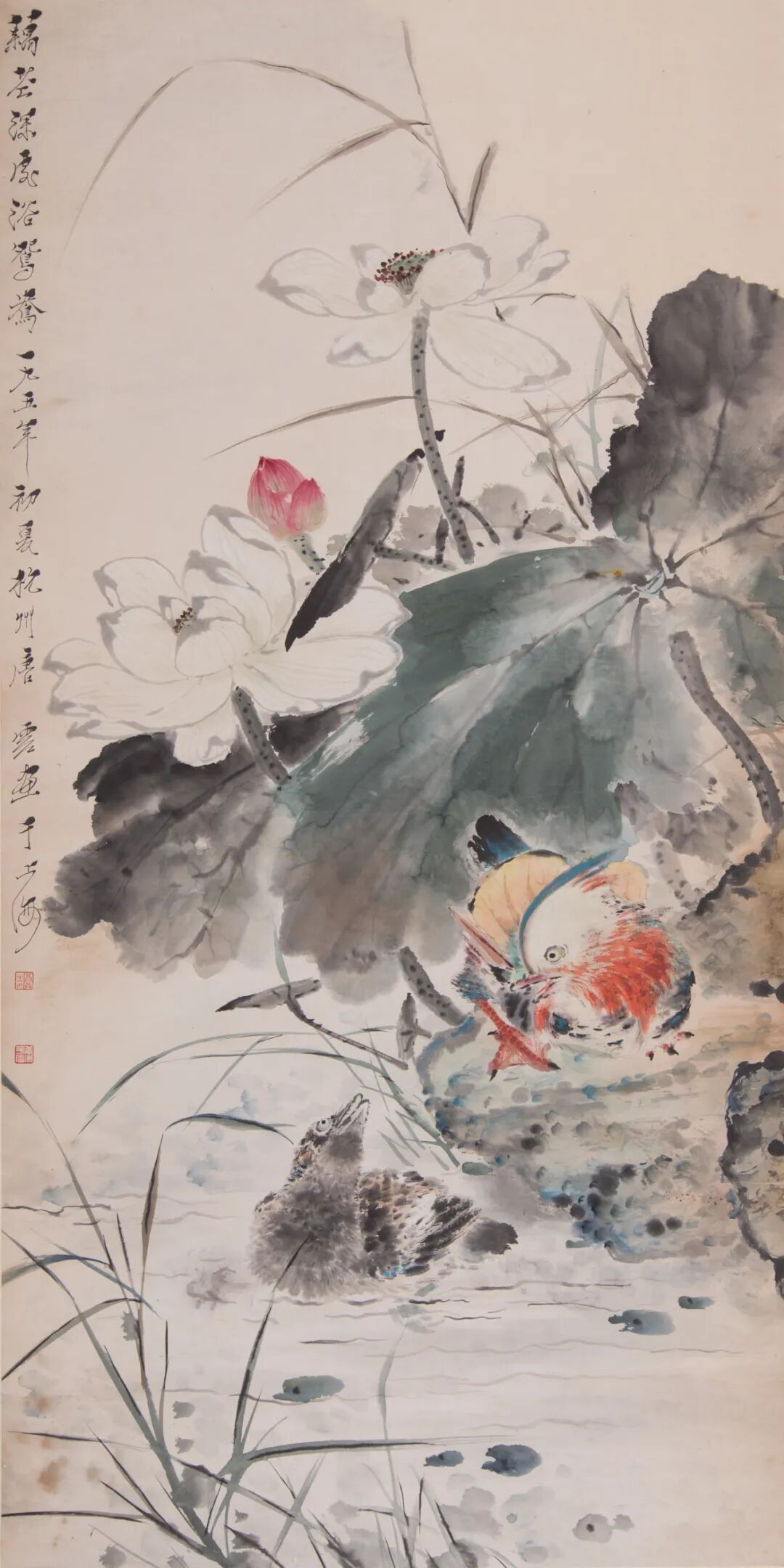 王雪涛,桂花双兔,纸本设色,96.8×37.6cm,私人收藏,龙美术馆提供