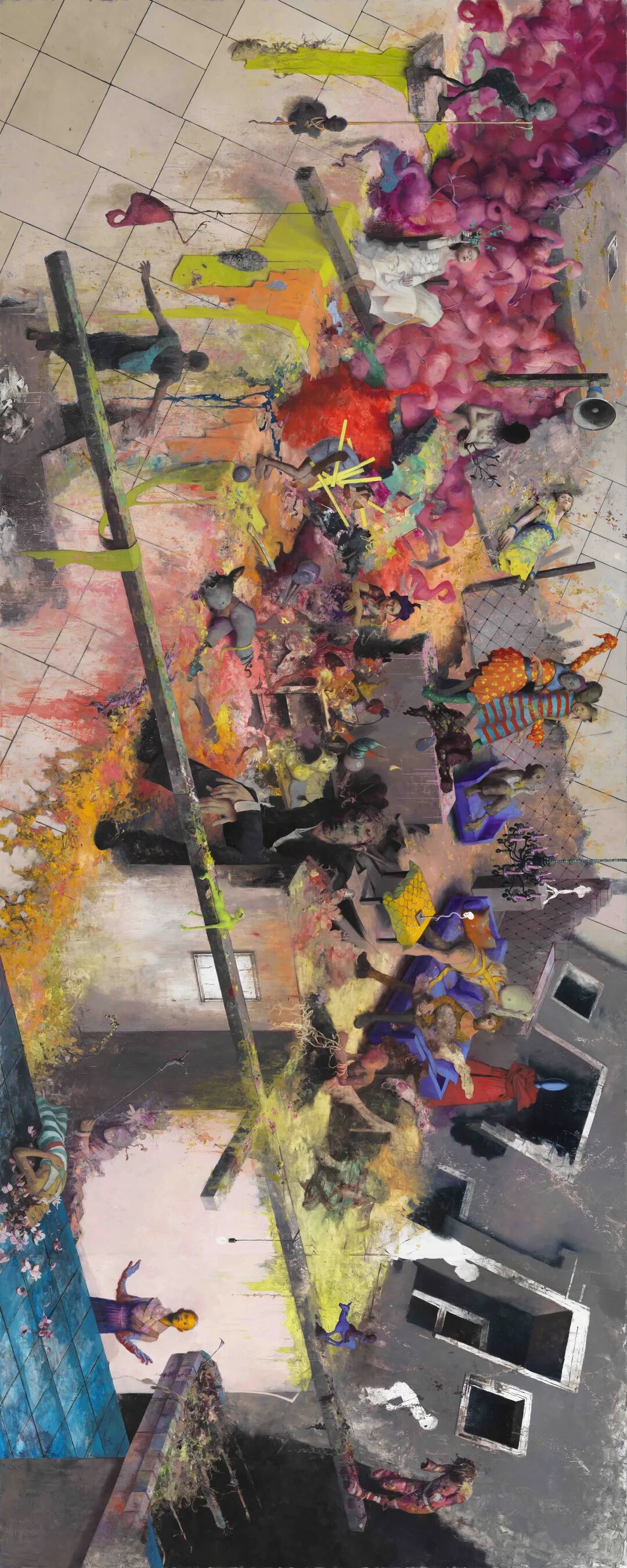 乔纳斯·博格特,《幸福入侵》,480 x 1200cm,布面油画,2021 ©乔纳斯·博格特,当代唐人艺术中心