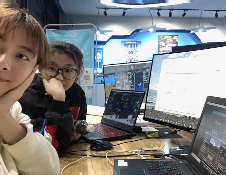 邹凤翥与郝雨彤在飞行模拟协会
