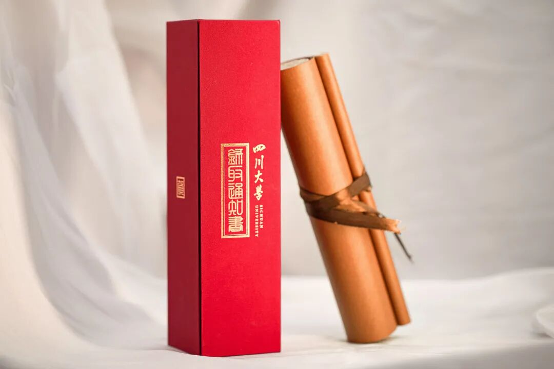 四川大学新版录取通知书设计方案,由四川大学艺术学院院长何宇教授指导,2020级艺术设计硕士研究生何嘉卓担任执行设计,2020级设计学硕士研究生张兰馨、2020级艺术设计硕士研究生秦佳文担任插画设计。