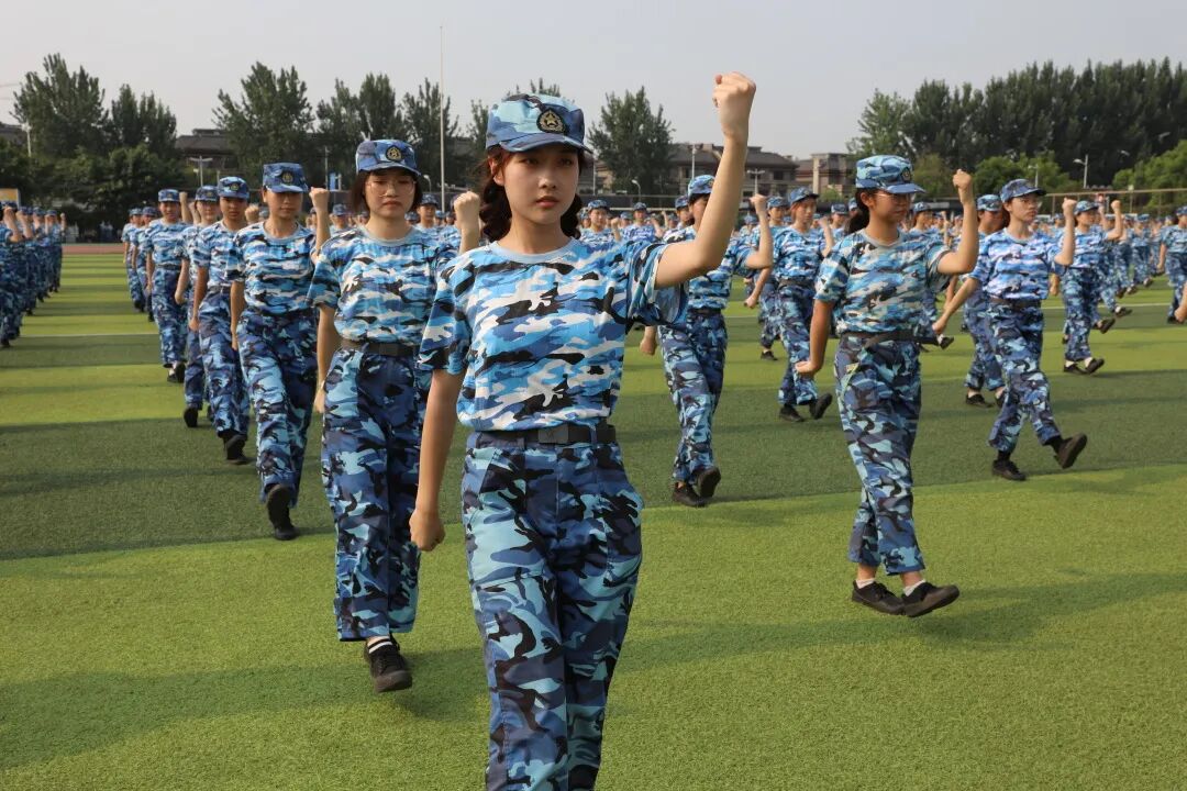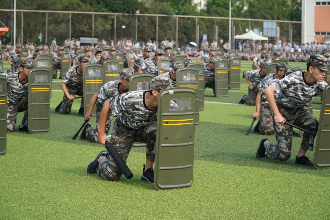 赤子胸怀凌云志,且投纸笔换戎装。暑日背灼炎天光,谁怕?川大学子步铿锵! 旌旗警棍当空舞,回顾,练就一身钢铁骨。初心不改树理想,立志,报效祖国谋富强!