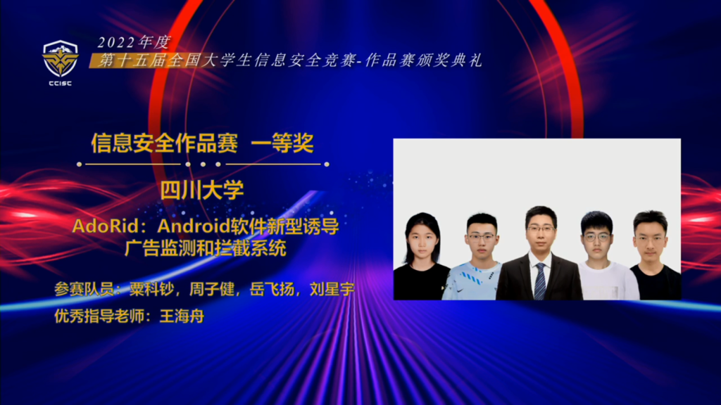 2022年第十五届全国大学生信息安全竞赛作品赛四川大学获奖名单