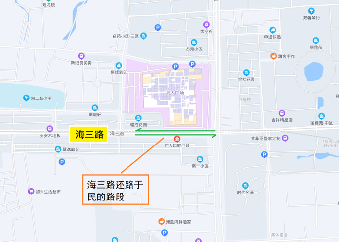 海三路还路于民的大润发路段示意图