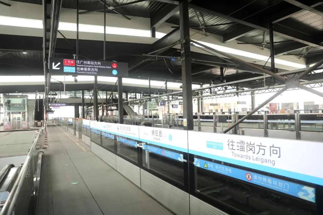 乘坐南海有轨电车1号线抵达林岳西站后,可在站内换乘,乘客无需出闸,按站内指引换乘佛山地铁2号线。