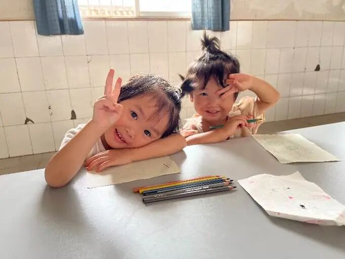 “前天晚上,几个小姑娘找到我,将她们珍视的礼物——一张咕卡,递到我手上。她们一个给我拿了瑞士卷,一个给我编小辫,还把写了‘谢谢你,老师’的明信片送给我,做完这一切又觉得不好意思,笑着跑开了。” 提起这个暖心的小故事,支教团成员徐盛馨的眼眶湿润了。