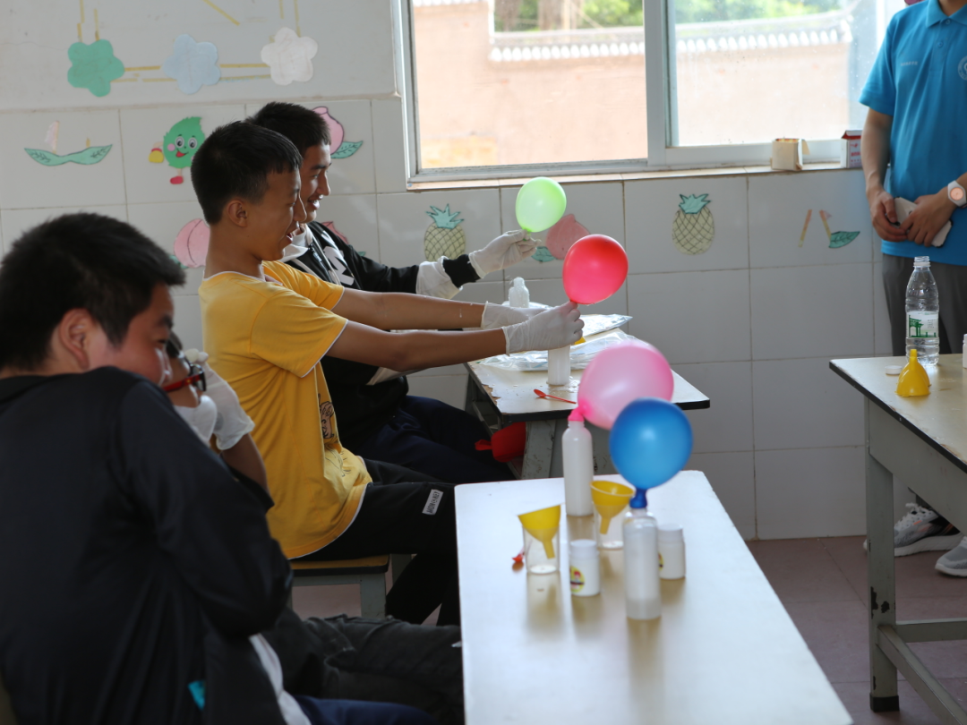“我家孩子昨天跟我说‘妈妈我吹气球了,但不是用嘴吹的,你猜用的什么?是用小苏打和碳酸钠’。以前从没见他们这么爱来学校,真心感谢你们。”王俊杰、王俊昊的妈妈忍不住夸赞道。