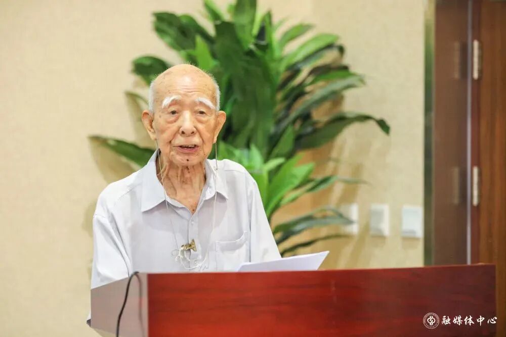 96岁的冯增昭站在演讲台上