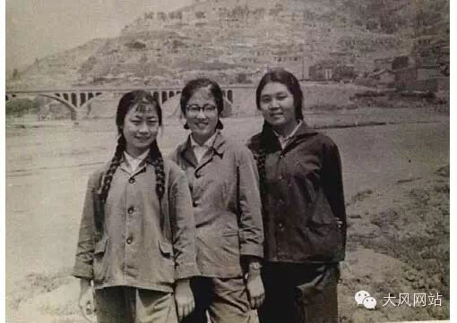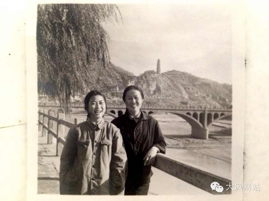 和邻队女知青在延河畔的合影
