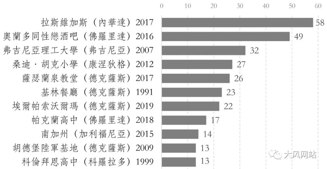 註:死亡人數為被槍殺者,不包括被擊斃或自殺的槍手。