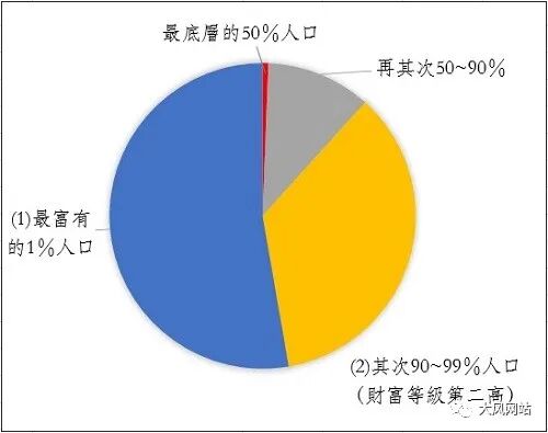 圖~1:美國不同組別人口擁有的家庭財富比重(%),2020年9月
