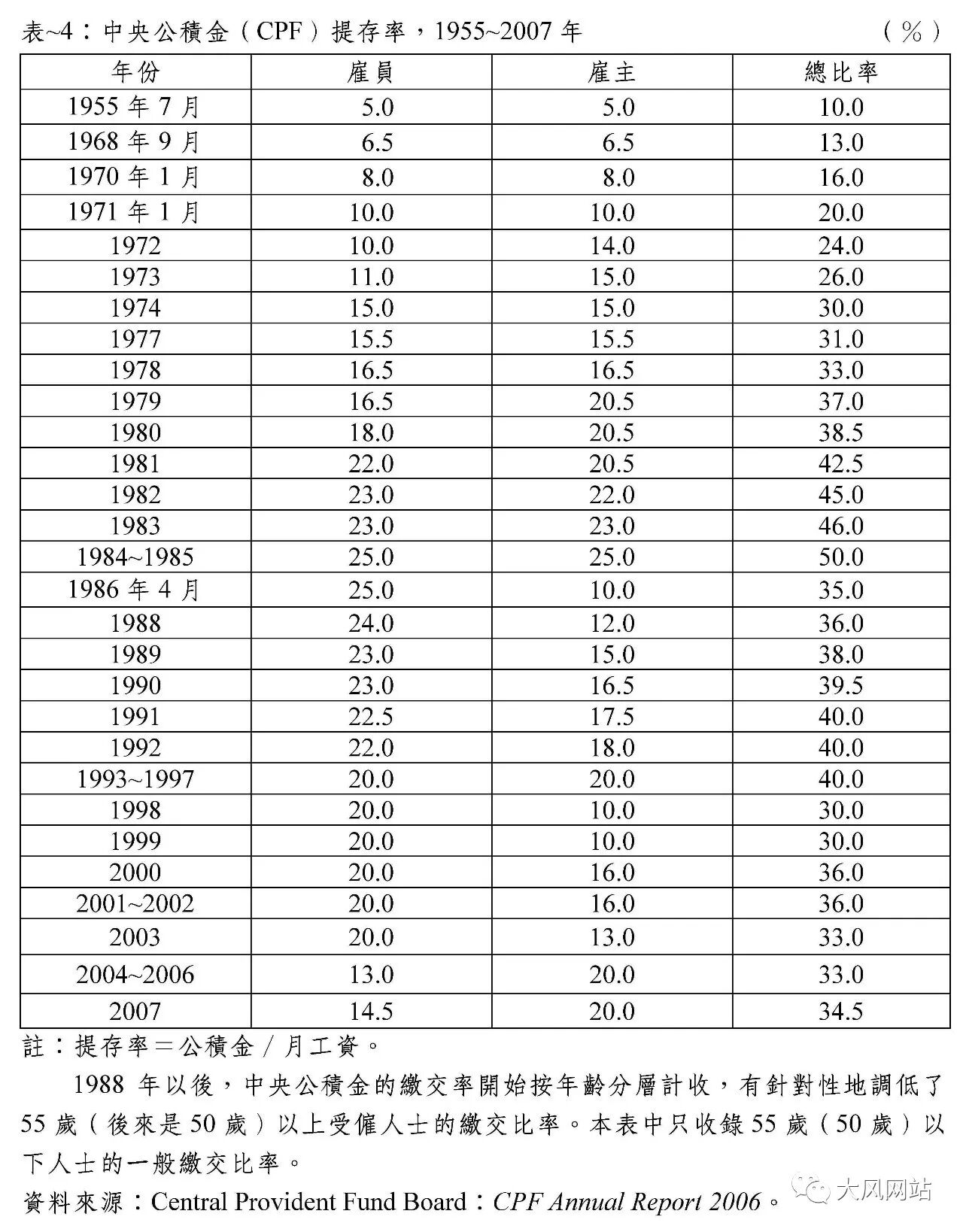 新加坡的公積金制度於1955年建立。開始繳納率為10%,雇員和雇主各繳5%。以後逐年增加,強制雇主和就業人口繳納高額“中央公積金”作為社會保障。1984~1985年最高,雇員和雇主各繳25%,公積金佔工資比例高達50%。1986~1987年,雇員仍需繳納25%。隨後,繳納比率開始下調。