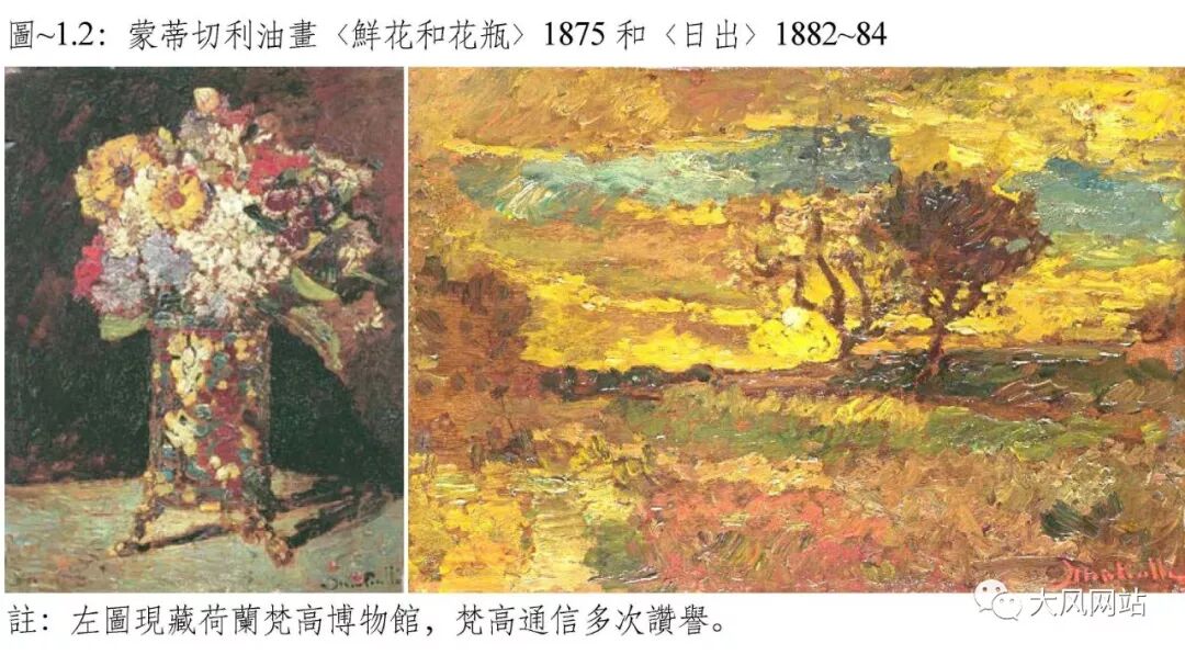 蒙蒂切利是位思維縝密的色彩大師,能在協調色調變化進行最為複雜和細微的構思,這樣的工作必然會導致他用腦過度,就像德拉克洛瓦和里查·瓦格納那樣。——致提奧1888年7月1日《梵高書信全集》