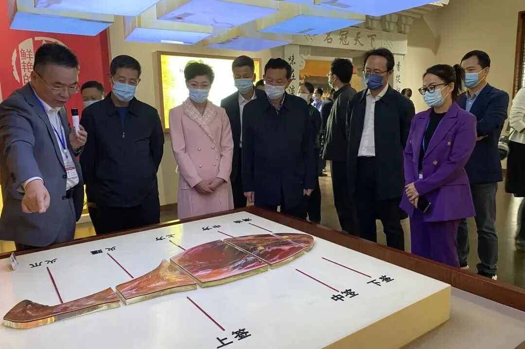 随后,调研组来到火腿行业消费教育基地——中国火腿博览馆(金华金字火腿有限公司),听取了公司总工程师关于金华火腿加工技艺、品鉴方法和火腿消费教育等方面的介绍,对企业在改进火腿制作工艺、弘扬地方特色文化、普及火腿消费知识等方面做出的贡献表示赞赏,鼓励企业传承品质、开拓创新,不断擦亮金华火腿的“金字”招牌。